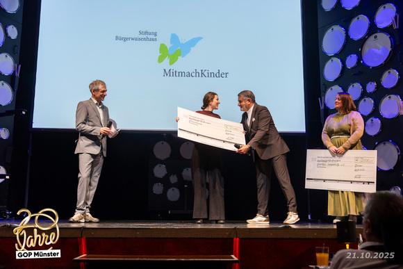 Unsere Kollegin Anne Knispel durfte bei der Gala zum 20jährigen Jubiläum des GOP Münster einen großen Scheck für die Mitmachkinder entgegennehmen. GOP-Direktor Hamid Reghat hat den Scheck auf der Bühne überreicht. Im Interview mit Thomas Philipzen, dem Moderator der Gala, hat Anne Knispel den Gästen im Publikum erzählt, wie großartig es sein kann, ehrenamtlich Mitmachpatin oder Mitmachpate zu werden. Wir freuen uns über neue Patinnen und Paten. Wir freuen uns aber auch ganz besonders über die großzügige Spende vom GOP! Die Mitmachkinder sagen DANKESCHÖN!