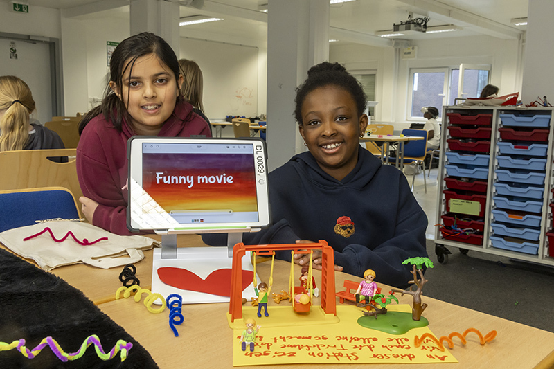 Bereits am ersten Tag konnten die Kinder an verschiedenen Stationen erste Erfahrungen mit digitalen Technologien sammeln – sie testeten kleine Roboter, probierten einfache Programmierungen wie Scratch aus, produzierten Stop-Motion-Filme und erkundeten virtuelle Welten. So entstand ein offener Raum, in dem sie ohne Druck herausfinden konnten, was sie besonders interessiert.