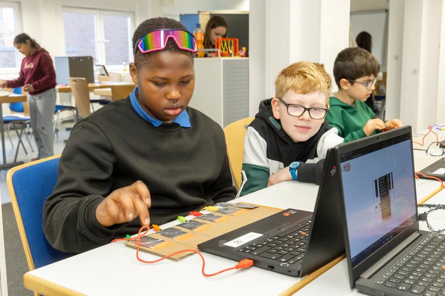 Möglich gemacht wurde das Projekt durch die Unterstützung der Westfalen AG, die sich seit Jahren für Bildung und Chancengleichheit engagiert. Vorständin Dr. Meike Schäffler unterstreicht: „Uns ist es als Westfalen AG wichtig, Kinder für Themen wie Mathematik, Informatik, Naturwissenschaften und Technik zu begeistern. Entwicklungen wie künstliche Intelligenz und digitale Technologien verändern unsere Welt – und wir möchten dazu beitragen, dass Kinder neugierig bleiben und die Chance bekommen, diese Bereiche spielerisch zu entdecken.“
